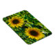 Los girasoles gemelos en un campo cálido y soleado le dan un toque cálido al imán frigorífico. Se puede decorar con texto para personalizar el imán.