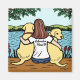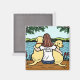 Dulce dos labradores amarillos y mamá (con el pelo más largo) imán. Hermosos Labs Amarillos y su mamá humana están descansando en el lago. ¿¿¿Qué están charlando??? ¡Bonitos regalos para los amantes del perro que aman el Labrador Amarillo! Creado por Naomi Ochiai.
