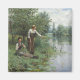Imán Dos mujeres pescando en la hierba junto al río