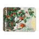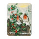Vintage ilustracion navideño de dos pequeños ladrones sentados en una valla con bayas en la nieve.