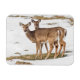 Dos ciervos le dan al fotógrafo una mirada cercana de su lugar de pasto en un campo de descongelamiento de primavera.