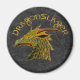 Cabeza de dragón hecha de oro de vidrio metalizado y verde - rodeada por el metalizado dorado del texto de fuente de fantasía "Dragonslayer". Un regalo perfecto para los amantes del dragón, fanáticos del arte de fantasía, jugadores de AD&D, jugadores de rol, jugadores de fantasía - para cumpleaños, navidades o sólo porque!