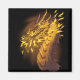 Un dragón se baña en la luz dorada de su increíble ventilador del fuego. Por Paxdomino