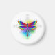 Luminosa, arco iris, libélula poligonal sobre fondo blanco, pintada con acuarela.