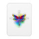 Luminosa, arco iris, libélula poligonal sobre fondo blanco, pintada con acuarela.