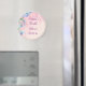 Un imán conmemorativo femenino elegante perfecto para duchas de boda o de bebé. Una suave y delicada ilustración de acuarela de un arreglo floral con hermosas flores silvestres rosas y azules con un fondo de pergamino de melocotón que da a este diseño un encanto vintage. Las flores azules decoran el borde del diseño mientras que las flores rosas se desvanecen en el fondo para un efecto suave y delicado.