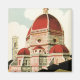 Afiche de viaje europeo de ilustracion vintage o etiqueta de equipaje de Florencia, Italia con la Catedrale di Santa Maria del Fiore, la Catedral de Florencia o el Duomo. Arquitectura religiosa clásica italiana.
