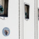 Imán de foto de guardar la fecha con letra moderna en azul polvoriento que presenta una ventana de foto en forma de corazón, fondo azul suave y título con letra manuscrita en blanco. Este diseño muestra bellamente su foto de compromiso mientras presenta claramente la fecha y el lugar de la boda en una paleta de colores fresca y refinada. Muy adecuado para bodas, celebraciones de destino, renovaciones de votos o compromisos elegantes con una estética moderna o clásica. Personalice fácilmente con sus detalles.
