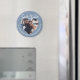Dusty blue photo modern script save the date magnet featuring a heart-shaped photo window, muted blue background, and hand-lettered script headline in white. This design beautifully showcases your engagement photo while clearly presenting the wedding date and location in a cool, refined color palette. Well suited for weddings, destination celebrations, vow renewals, or elegant engagements with a modern or classic aesthetic. Easily personalize with your details.