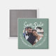 Dusty green photo modern script save the date magnet featuring a heart-shaped photo window, muted green background, and hand-lettered script text in white. This design showcases your engagement photo while clearly presenting the wedding date and location in a calm, organic color palette that suits a wide range of wedding styles. Ideal for weddings, outdoor celebrations, destination events, or vow renewals with a refined, natural aesthetic. Easily personalize with your details.