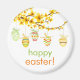 Beautiful easter magnet with the colorful easter eggs and forsythia branch. Is the perfect finishing touch for your easter invitations. You can customize the text, background color to suit your needs. Matching items available in our store.