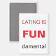 Here's an obvious statement, stated boldly and simply to make a "no kidding" joke. Lighten up your kitchen decor with this funny refrigerator magnet fashioned after the classic "Reading is fundamental" campaign from back in the day. Let the minimalist design and bold type let everyone know you have a love-love relationship with your refrigerator and all its contents.