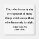 "Los que sueñan día a día son conscientes de muchas cosas que escapan a los que sueñan solamente de noche". - Edgar Allan Poe
