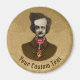 Aterrorizado Edgar Allan Poe viendo un bicho dorado en su corbata. Esbozo de lápiz de tinta coloreada. texto personalizado en círculo.