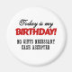 El humorístico diseño de cumpleaños con texto rojo y negro dice "¡Hoy es mi cumpleaños! ¡No se aceptan los regalos necesarios en efectivo"!