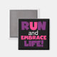 Si te gusta correr, correr 5 Ks, 10 Ks, media maratón o maratones, te encantará este colorido diseño de texto en morado y rosa que dice Correr y abrazar la vida!