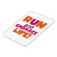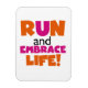 Si te gusta correr, correr 5 Ks, 10 Ks, media maratón o maratones, te encantará este colorido diseño de texto en naranja y rosa caliente que dice ¡Corre y adopta la vida! Corre y abraza camisetas de la vida, caramelos, imanes, botones, tarjetas, pegatinas, llaveros y muchos otros artículos para corredores que aman un diseño de ejecución brillante y colorido.