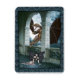 El Dragón Armado, Kedomaand, verifica su captura de la espantosa y oscura faerie, Asaelia Fae. Los agudos talones de HI se aferran a la pared de roca de la torre - la boca se abalanzan y los ojos rojos brillan.