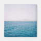 Ricas aguas azules del océano Atlántico bajo un cielo azul claro, algunos de los volcanes de Lanzarote forman un niebla fondo de la escena.