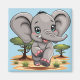 Elephant Cute Baby Happy Cartoon Character corría y saltaba sobre el paisaje africano de Savannah. Ilustracion vectorial original Copyright BluedarkArt TheChameleonArt.