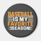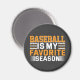 ¡A cualquiera que le guste el béisbol le encantará este imán con temas de béisbol que incluye un texto de oro y blanco que dice ¡El béisbol es mi estación favorita!