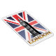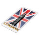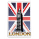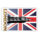 Un diseño vintage con un dibujo en blanco y negro del Big Ben colocado sobre la Union Jack.