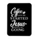 Este imán flexible presenta un diseño de tipografía de cita cristiana en escritura blanca moderna que dice "El café me empieza Jesús me mantiene en marcha". Muéstralo en tu casa u oficina. ¡De nuestros corazones a los tuyos, disfrútenlo!