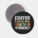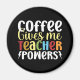 Gracioso diseño de café para profesores que aman y necesitan su café en bolsas para profesores, cuadernos, tazas, almohadas, camisetas, botones y más. El texto dice Café me da poderes docentes!