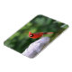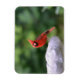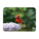 Este imán flexible presenta un cardenal rojo masculino sentado al borde de un baño de aves en Nueva Inglaterra