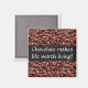 ¡Este imán fue creado pensando en el amante del chocolate! El diseño incluye un campo de patatas fritas de chocolate. Hay una pancarta negra con texto blanco que dice: "¡El chocolate hace que la vida valga la pena!" Este imán de novedad de patatas fritas de chocolate es un gran regalo para el amante del chocolate en tu vida. ¡Si el diente dulce pertenece a un amigo, a un ser querido o a ti mismo!
