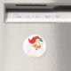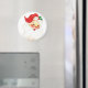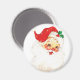 Este imán vintage de Navidad de mediados de siglo presenta a un Santa Claus sonriente, de rojo y blanco brillante, con una mancha en el ojo, mejillas rosadas y gorra rojo.