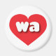 Este imán presenta un vibrante corazón rojo que contiene las letras fundas audaces, blancas y redondeadas, que son una abreviatura divertida para Washington, el estado de siempre verde.
