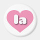 Este imán presenta un vibrante corazón rosado que contiene las letras fundas de la negrita, blanca, redondeada, una abreviatura divertida para Luisiana, el estado pelícano O Los Ángeles, la ciudad de los ángeles.