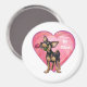 Desfile Animal Romántico Perro Chihuahua Perro Personalizado de Corazón y Amor regalos, tarjetas y accesorios, presenta nuestra divertida obra de arte de un Chihuahua negro y tanón sosteniendo en su boca a un rosa bonito con los corazones púrpura, rojo y rosado en capas detrás de la pintura digital de nuestro talentoso artista infantil, Traci Van Wagoner. Este dulce perro con diseño de amor es un regalo perfecto para el El día de San Valentín, su cumpleaños, por proponer matrimonio de una manera divertida y original, o sólo para decir, te amo. ¡Vaya!