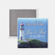Faro Kilauea Point en Kauai Hawaii, en un acantilado verde contra el océano azul con el tipo de letra Save the Date en script. Cambiar fácilmente los nombres y fechas de este faro ahorra el imán de fecha.