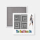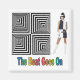 Imán cuadrado con una imagen de Op Art gris y negro, una mujer vestida de forma de Mod blanco y negro, y las palabras "The Beat Goes On" debajo en letras de arcoiris. Vea toda la colección Disco 70s Magnet en los TOUCHES ESPECIALES | Sección de favoritos de partido.