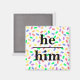 Imán Pronoun con confeti de arcoiris en colores pastel. Muestra tu nave con un imán pronombre. Ideal para personas trans, receptivas, fluidas por el género o no conformes -y normalizar su uso para todos es un gran tipo de apoyo.