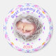 Bonito Circular Día de la Madre Nuevo Mam Mammy Niño Niño Niño Niño foto regalo imán. En primavera y verano, los colores rosa pastel y violeta. Un borde de primavera y verano rodea la imagen en el medio. Reemplace la foto con una imagen de su propio y hermoso recién nacido, o chica, o niño. El texto de arriba dice "¡Mejor Mammy nunca!" en morado. En el fondo está el año, en rosa. Personalice esto cambiando el año. Regale como regalo a una nueva madre en el Día de la Madre. Mamá, mamá, mamá, mamá, mamá y madre amarán poner este imán de regalo en su nevera para celebrar el nacimiento de su recién nacido. En colores claros y luminosos.