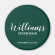 Regalos personalizados de Groomsman con el nombre personalizado del groomsman en un estilo de letra blanco moderno con el título y la fecha boda en un estilo de letra sans serif moderno con fondo verde esmeralda. También perfecto para el mejor hombre, padre de la novia, dama de honor, madre de la novia y más.