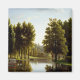 Este diseño presenta un cuadro del artista francés Jean-Joseph-Xavier Bidauld (1758-1846). Muestra un hermoso paisaje que rodea un lago en bote en un parque en Mortefontaine, al norte de Francia. El lago parece un río. Hay un barco en el agua con gente desembarcando. También hay cisnes nadando en el agua. Hay muchos árboles alrededor del lago. El cielo es azul brillante y contiene algunas nubes espesas blancas. La obra original fue pintada en 1806.