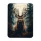 Una escena poderosa y dramática de un alce de pie orgullosamente en el bosque, sus majestuosos cuernos sobre el denso bosque. Las profundas sombras y la atmósfera malograda que rodean al alce crean una sensación de misterio y fortaleza, capturando la belleza cruda de la naturaleza.
