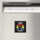 El imán del orgullo gay presenta puño desafiante en el fondo del arcoiris con 1969 - texto de recuerdo de los disturbios Stonewall en Nueva York.