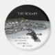 Este imán redondo tiene una foto en blanco y negro (tomé) del rosario con un crucifijo borroso de Jesús en la cruz y una bella cita de San Luis de Montfort (1673-1716), un sacerdote católico romano francés: El Rosario es un tesoro invaluable inspirado por Dios.