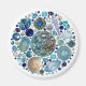 Imán redondo con una imagen de hermosas piedras preciosas, conchas y una sirena de plata sobre blanco. Ver la colección completa de Under the Sea Magnet en los TOUCHES ESPECIALES | Sección de favoritos de partido.