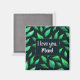 Amar el imán del Día de la Madre con un oscuro patrón botánico creado a partir de una tinta de medios mixtos y pintura digital de hojas verdes abstractas con venas verdes claras sobre fondo verde oscuro, casi negro. Este folleto para la madre amante de la naturaleza muestra el texto del personalizable "Te amo, mamá".