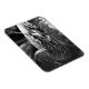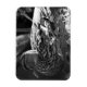 Fotografía en blanco y negro de un pato sentado en la orilla del río mirando hacia el agua.