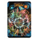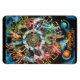 Un ilustracion imaginativo, detallado y caprichoso, perfecto para los aficionados a la astrología y personas de todas las señales solares. Doce chicas adolescentes disfrazados, vestidos con los símbolos tradicionales del occidente, el zodiaco griego, se sientan sobre una rueda celeste circular, dorada, con remolinos orgánicos, sus constelaciones cercanas al centro en círculo, y en el centro de la rueda están las doce piedras de nacimiento de zodiaco respectivas. Los chicas se visten de forma brillante, con los colores de cada signo zodiaco. Detrás de los personajes brillantes y coloridos se esconde un cielo nocturno oscuro con nebulosas turquiosas y agitadas, y en la parte superior está el planeta Saturno visto en color turquesa, el sol y la luna en naranja amarillo dorado y turquesa, y la palabra "zodiaco" pintada en naranja amarillo dorado. Esta pintura fue hecha en acuarela y guache, y es de todos mis personajes que luego desarrollaría en las pinturas separadas de cada signo zodiaco. Gran obra de arte para los adolescentes y la diversión, joven en el corazón.