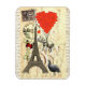 Un animal de elefante vintage divertidísimo y jovial, con globos en forma de corazón valentino rojo, con la torre Eiffel. París, Francia en un diseño retro de postal antiguo, con pavo real y mariposa. Visite la TIENDA de VINTAGEPRINTS para más diversión ilustracion vintage, románticos regalos día de San Valentín.