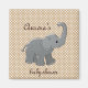 Un elefante lindo para una ducha de bebé o un anuncio de nacimiento. El color del fondo y del texto son personalizables.