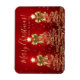 Elegant Merry Christmas / Happy Holidays "Magnet" Gold Trees with bows on red with a custom text.